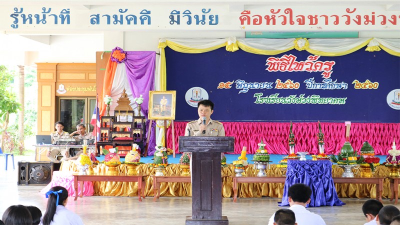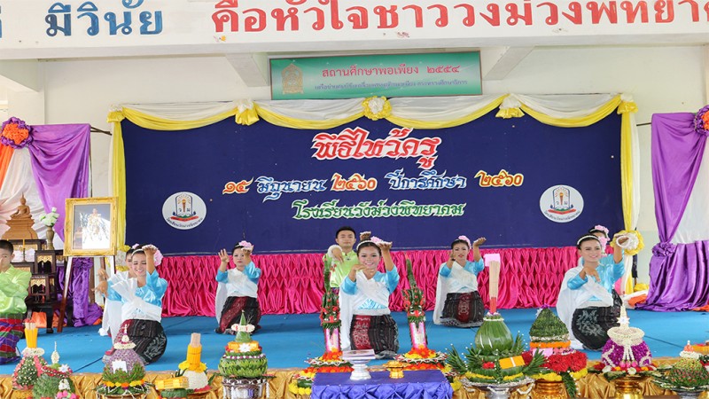 นักเรียนโรงเรียนวังม่วงพิทยาคมร่วมกันจัดกิจกรรมวันไหว้ครูเพื่อแสดงความเคารพ ความกตัญญูต่อ