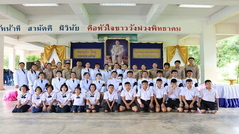 โดยผู้บริหาร คณะครู และนักเรียนโรงเรียนวังม่วงพิทยาคมได้ร่วมกันถวายพระพรชัยมงคล