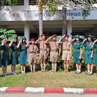 พิธีเข้าประจำกองลูกเสือสามัญรุ่นใหญ่ ประดับอินธนูให้แก่ลูกเสือ ม. 1 กองลูกเสือโรงเรียนวังม่วงพิทยาคม
