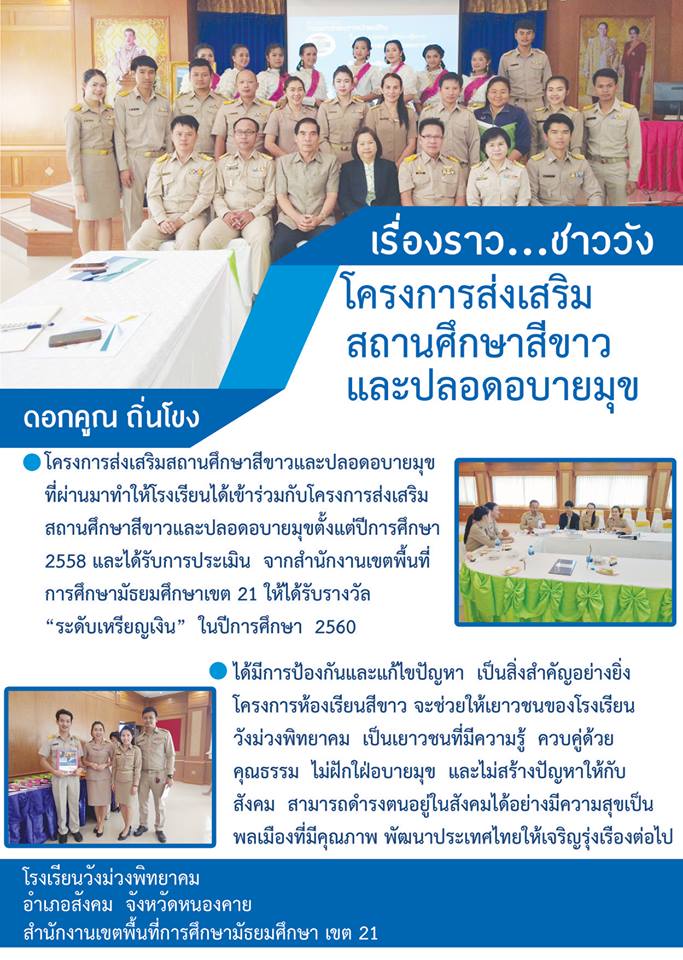 การดำเนินโครงการส่งเสริมสถานศึกษาสีขาวและปลอดอบายมุข