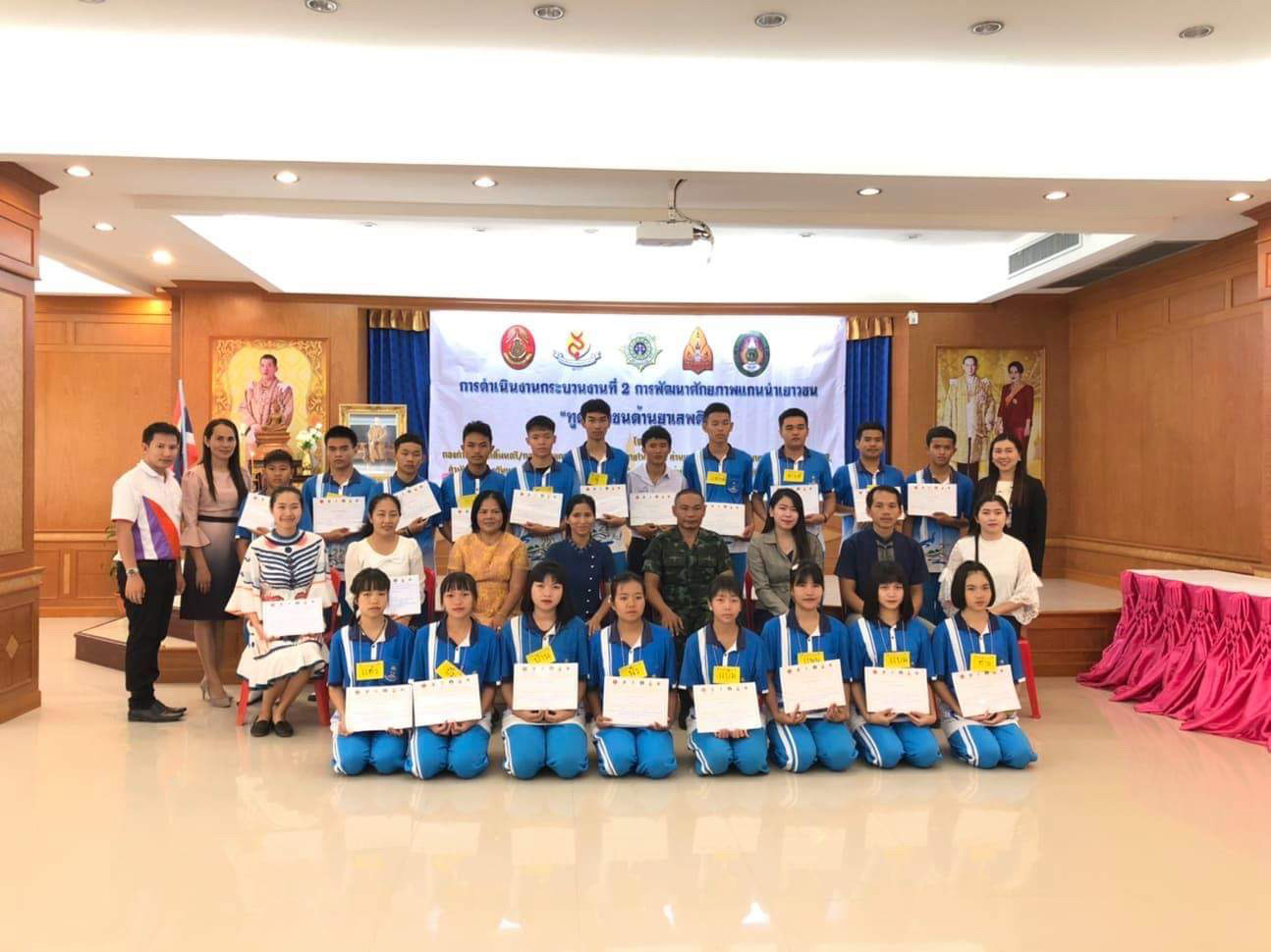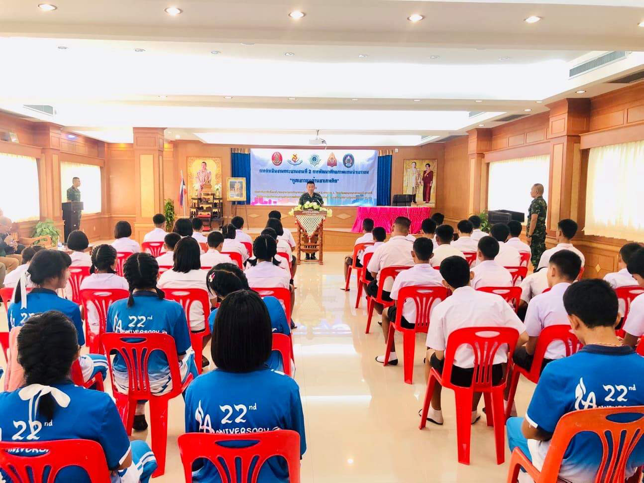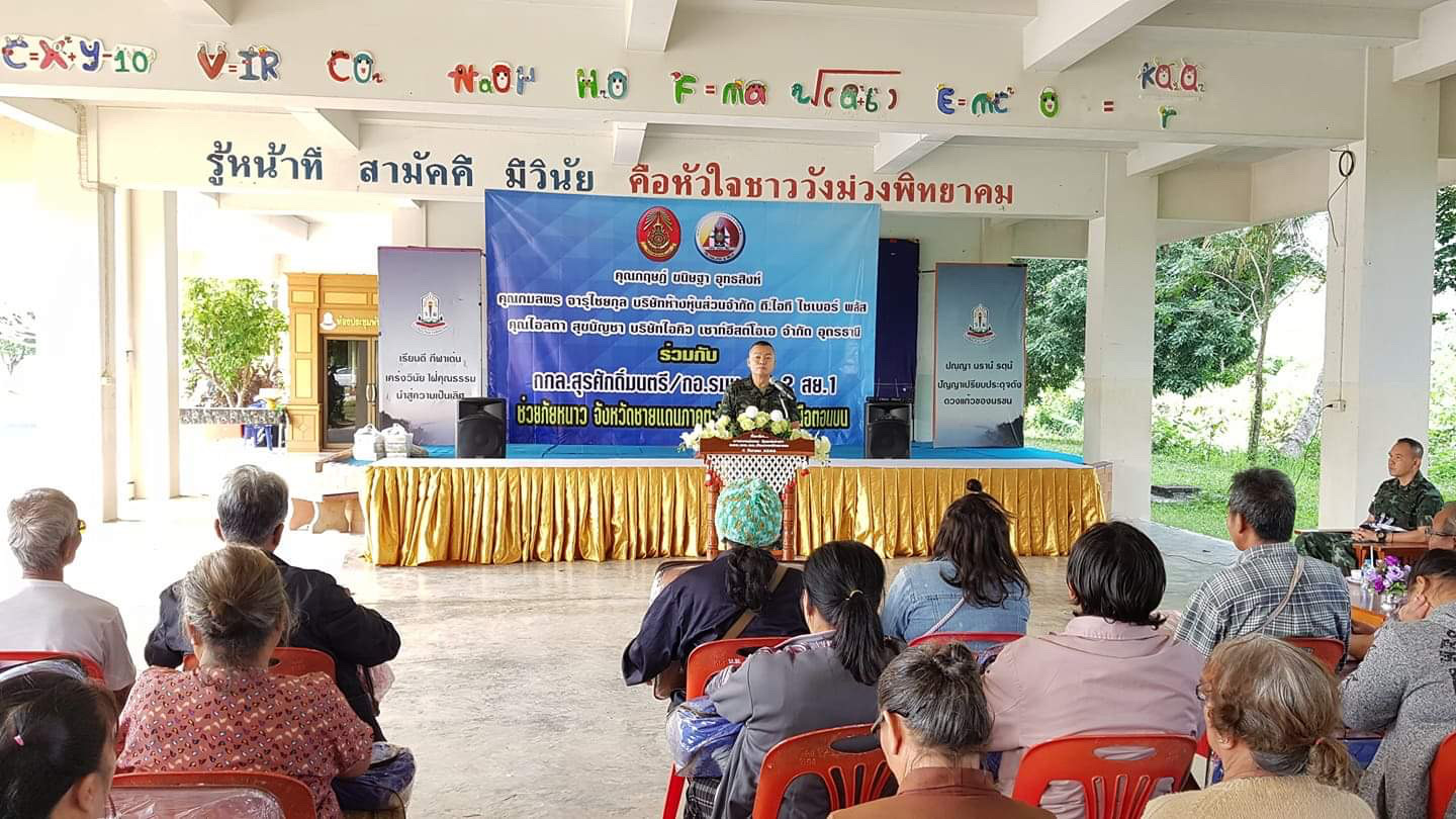 | เมื่อวันที่ 7-8 พ.ย. 62 พ.อ. จักรพงษ์ โพธิ์นาแค รอง เสธ.กกล.สุรศักดิ์มนตรี/รองเลขาธิการ กอ.รมน.ภาค 2 สย.1 เป็นประธานพิธีเปิดการฝึกอบรมการพัฒนาศักยภาพแกนนำเยาวชน "ทูตเยาวชนต้านยาเสพติด" รุ่นที่ 3 ในพื้นที่ อ.สังคม จ.หนองคาย ณ โรงเรียนวังม่วงพิทยาคม ต.บ้านม่วง อ.สังคม จ.หนองคาย โดยมีเยาวชนเข้ารับการฝึกอบรมฯ จำนวน 48 คน ผลการปฏิบัติเป็นไปด้วยความเรียบร้อย ในคราวเดียวกัน คุณกฤษฏ์ อุทธสิงห์ คุณกมลพร จารุไชยกุล บริษัทห่างหุ้นส่วนจำกัด ดีไปที ไซเบอร์พลัส คุณไอลดา สุขบัญชา บริษัทไอคิว เชาท์อีสโอเอ จำกัด อุดรธานี ร่วมกับ กกล.สุรศักดิ์มนตรี /กอ.รมน ภาค 2 สย 1 มอบผ้าห่มช่วยภัยหนาว ให้แก่ นักเรียน ชาวบ้านในชุมชน ต.บ้านม่วง และ ต.นางิ้ว ในโครงการ ช่วยภัยหนาว จังหวัดชายแดนภาคตะวันออกเฉียงเหนือตอนบน |