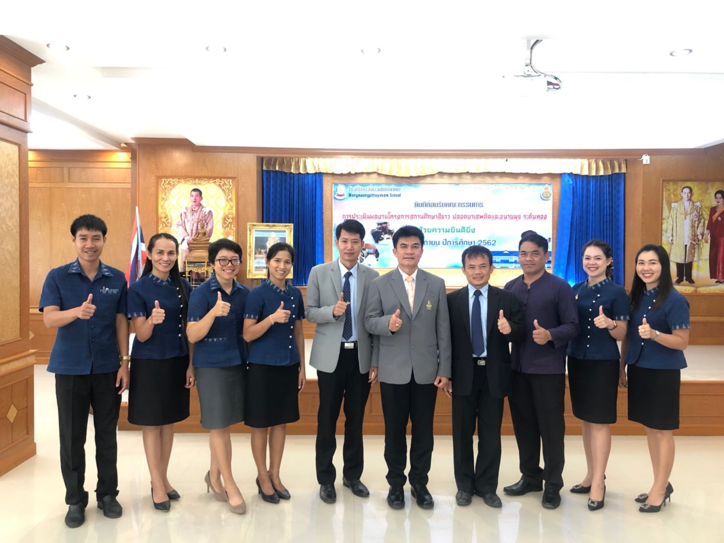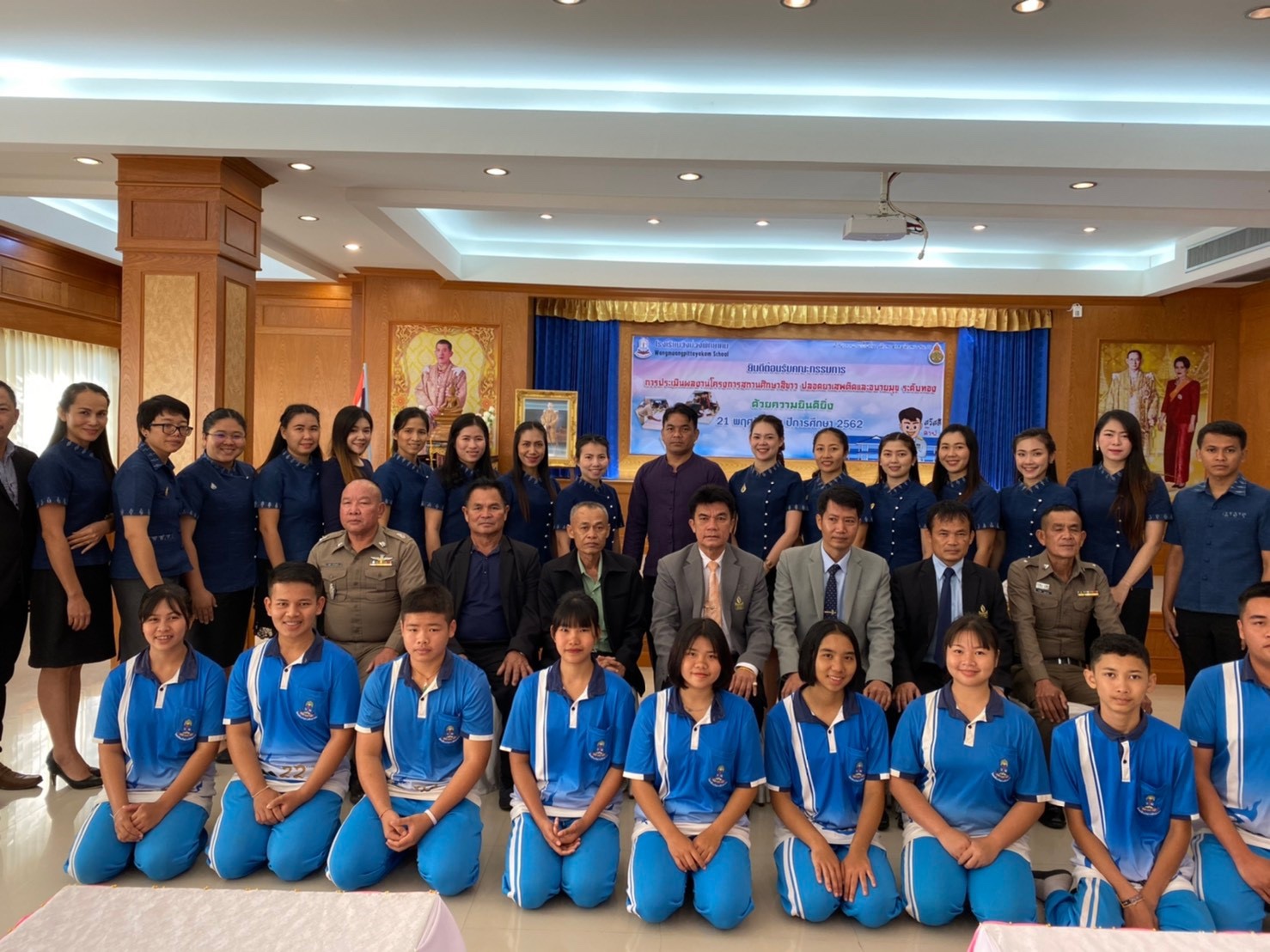 | เมื่อวันที่ 21 พฤศจิกายน 2562 โรงเรียนวังม่วงพิทยาคม นำโดยนายมหันต์ เวทไธสง ผู้อำนวยการโรงเรียน ต้อนรับคณะกรรมการประเมินสถานศึกษาสีขาว ระดับทอง เพื่อประเมินการดำเนินกิจกรรมของสถานศึกษาสีขาว ปีการศึกษา 2561 ที่ผ่านมา ณ ห้องประชุมพันโขดแสนไคร้ โรงเรียนวังม่วงพิทยาคม อ.สังคม จ.หนองคาย กิจกรรมการประเมินดำเนินไปด้วยดี ด้วยความเป็นมิตรของคณะกรรมการ ได้รับคำชื่นชม เสริมในส่วนที่ขาดขายไปให้สมบูรณ์ยิ่งขึ้น |